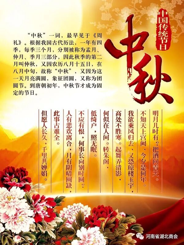 秋风送爽,丹桂飘香。值此戊戌中秋佳节来临之际,河南省湖北商会会长许锐、党支部书记张棕仁携商会第三届理事会班子成员向在豫湖北同乡、全体会员及社会各界朋友谨致以衷心的祝福和诚挚的问候!